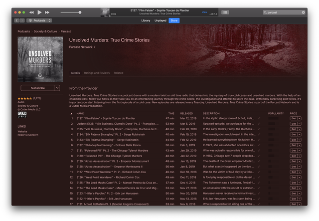 Parcast is known for some of the most popular crime-related and historic podcasts on iTunes such as Unsolved Murders, Cults, Conspiracy Theories, and more.